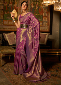 Golden Plum Purple Zari Woven Pure Handloom Kanjivaram Silk Saree