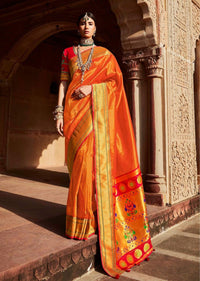 Orange Woven Traditional Tissue Paithani Silk Saree