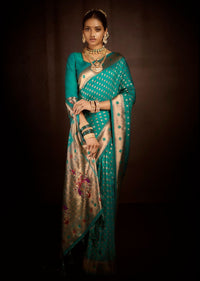Tiffany Blue Zari Woven Traditional Peshwai Paithani Silk Saree With Swarovski Work