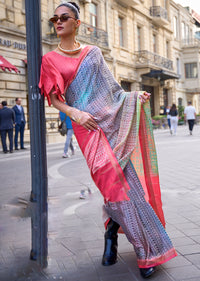 Grey Woven Digital Printed Crepe Silk Saree
