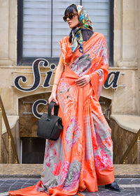 Orange Woven Pure Handloom Printed Gajji Silk Saree