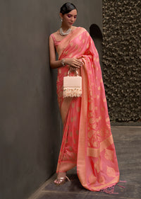 Salmon Pink Woven Two Tone Chinon Chiffon Silk Saree