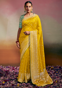 GOLDEN YELLOW WOVEN PURE CHINON CHIFFON DESIGNER SILK SAREE