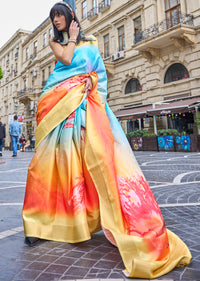 Blue Woven Pure Handloom Printed Gajji Silk Saree