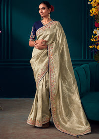 BALLET WHITE HEAVY EMBROIDERED BROCADE DESIGNER KANJIVARAM SILK SAREE
