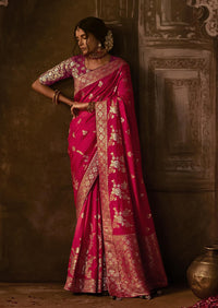 RUBY RED WOVEN PURE CREPE SILK DESIGNER BANARASI SAREE