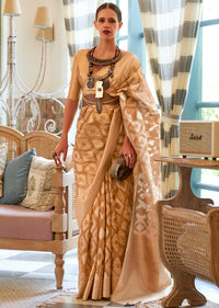 Golden Beige Woven Pure Handloom Tissue Silk Saree