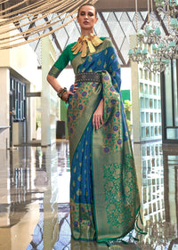 Yale Blue Woven Handloom Banarasi Silk Saree