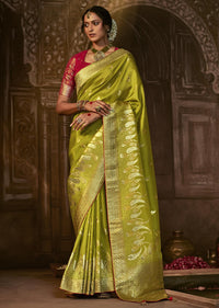 LIME GREEN WOVEN PURE CREPE SILK DESIGNER BANARASI SAREE