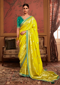 LEMON YELLOW PURE CREPE SILK DESIGNER BANARASI SAREE