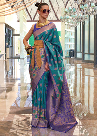 Teal Blue Woven Handloom Banarasi Silk Saree