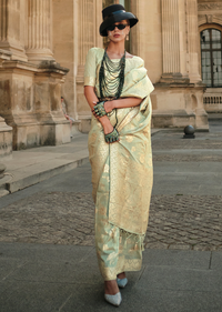 Teal Green Gota Woven Pure Handloom Silk Saree