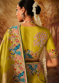 Lemon Yellow Zari Woven Heavy Embroidered Designer Kanjivaram Silk Saree