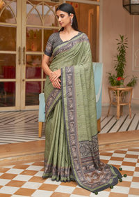 Ferm Green Woven Pure Handloom Khaddi Jute Silk Saree