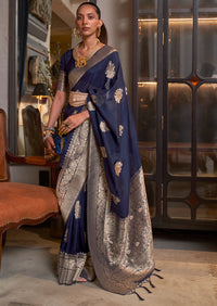 Navy Blue Zari Woven Pure Khaddi Banarasi Georgette Saree