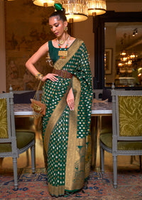 BOTTLE GREEN COPPER ZARI WOVEN PURE KHADDI GEORGETTE BANARASI SAREE