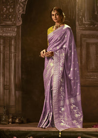 LILAC PURPLE WOVEN PURE CREPE SILK DESIGNER BANARASI SAREE
