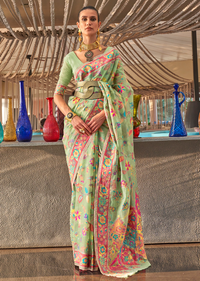 Pistachio Woven Pure Handloom Kashmiri Jamewar Silk Saree Sale