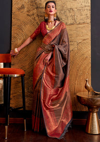Golden Black Zari Woven Pure Handloom Kanjivaram Silk Saree