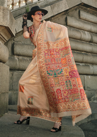 Cream Off White Woven Pure Handloom Kashmiri Jamewar Silk Saree