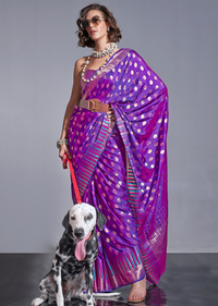Purple Zari Woven Pure Handloom Gadwal Banarasi Silk Saree