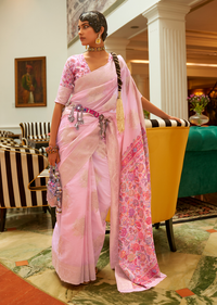CARNATION PINK WOVEN KASHMIRI JAMEWAR SILK SAREE