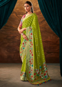 Parrot Green Zari & Resham Woven Designer Banarasi Silk Saree
