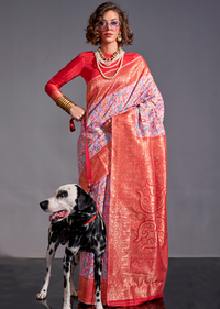 Lavender Pink Resham Woven Kashmiri Jamewar Silk Saree