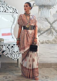 White Woven Pure Handloom Kashmiri Jamewar Saree Sale