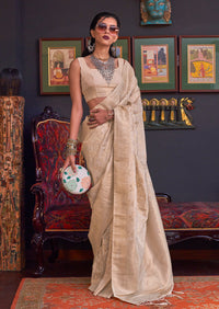 Pearl White Woven Pure Handloom Katan Silk Saree