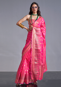 Ruby Pink Zari Woven Pure Handloom Gadwal Banarasi Silk Saree