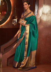 TEAL GREEN WOVEN HANDLOOM KANJIVARAM SILK SAREE