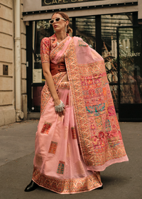 Crepe Pink Woven Pure Handloom Kashmiri Jamewar Silk Saree