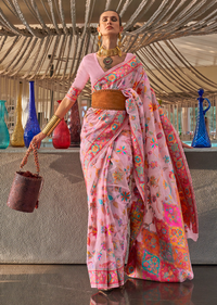 Carnation Pink Woven Pure Handloom Kashmiri Jamewar Silk Saree