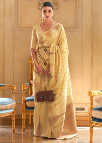 CORN YELLOW ZARI WOVEN PURE HANDLOOM KHICHA TISSUE SILK SAREE
