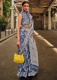 Bluish Grey Woven Handloom Chikankari Lucknowi Organza Silk Saree