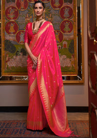 Ruby Pink Zari Woven Pure Handloom Banarasi Silk Saree