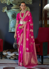 Hot Pink Zari Woven Pure Handloom Banarasi Satin Silk Saree