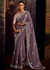 HEATHER PURPLE PURE TISSUE SILK HEAVY EMBROIDERED DESIGNER SAREE