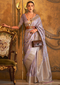 Heather Purple Zari Woven Handloom Pure Banarasi Satin Silk Saree