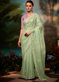 MINT GREEN PURE TISSUE SILK SWAROVSKI DESIGNER SAREE