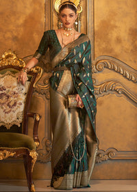 Bottle Green Zari Woven Handloom Pure Banarasi Satin Silk Saree