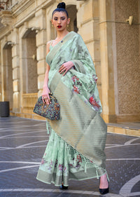 Mint Blue Woven Printed Brasso Handloom Silk Saree