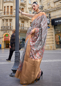 Cloud Grey Woven Printed Brasso Handloom Silk Saree