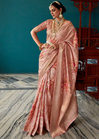 Peach Zari Woven Printed Handloom Crepe Silk Saree