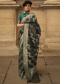 Bottle Green Woven Pure Handloom Banarasi Satin Silk Saree