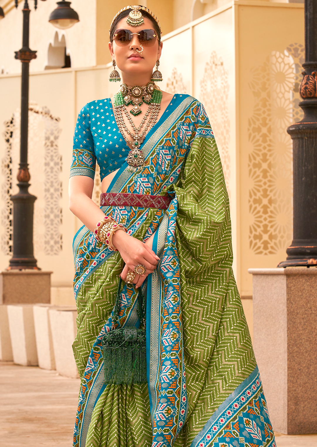 Olive Green Woven Patola Silk Saree