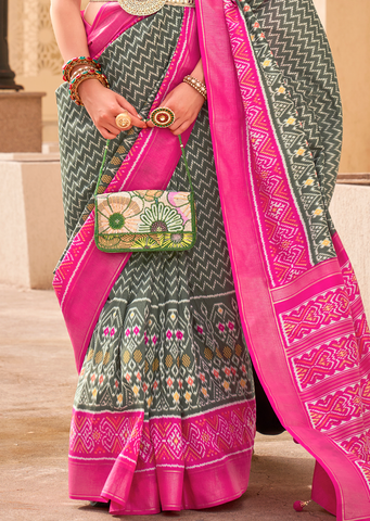 Moss Green Woven Patola Silk Saree