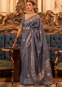 Slate Blue Woven Pure Handloom Tussar Silk Saree