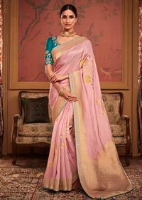 PASTEL PINK PURE CREPE SILK DESIGNER BANARASI SAREE